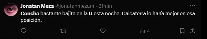 El cuadro merengue viene empatado 1-1 ante Junior de Barranquilla en el Estadio Monumental de Ate y a pesar de que recibieron un susto en los primeros 5 minutos de juego con un golazo del equipo colombiano supieron reponerse en cierta manera. Dicho esto, la presencia de Jairo Concha en el equipo titular no viene siendo muy bien justificada que digamos y por más que el profesor Fabián Bustos siga confiando en él, los hinchas ya no lo quieren seguir viendo.