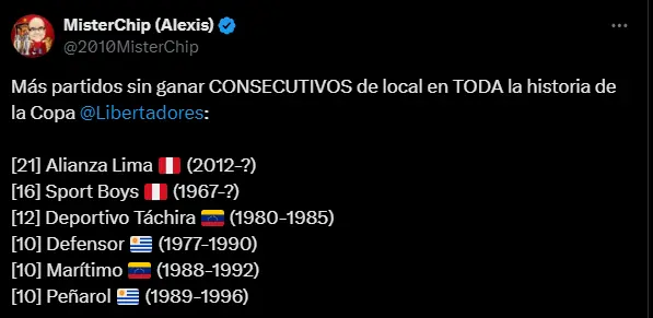 Desde el año 2012 que Alianza Lima no sabe lo que es ganar en casa, ya han pasado más de 10 años y todavía nada, eso que en esta oportunidad tuvo rivales de bajo nivel, pero ni así consiguió ganarle a ninguno, un desastre en esta competición que ya deja en duda si armaron bien el plantel.