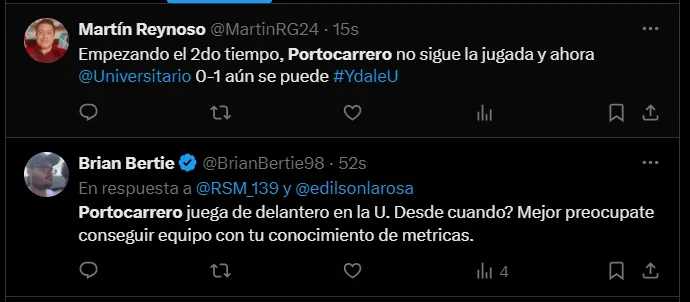 Es justamente el aficionado de Universitario de Deportes que no está tan tranquilo con el rendimiento de un Segundo Portocarrero que a estas alturas de la temporada 2024 pareciera que el tiempo se le va acabando ya que desde que llegó al plantel a pedido del DT argentino fue titular, pero todavía no ha sido capaz de corregir este aspecto de lanzas buenos centros y dejar de ser un peligro con el balón cada vez que el juego toma dirección para la zona en donde normalmente está.