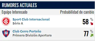 Para comenzar tenemos al Internacional de Porto Alegre, el exequipo de Paolo Guerrero estaría interesado en contratarlo, al parecer su velocidad y polifuncionalidad dentro del campo, lo haría un jugador más que interesante para tener en el Brasileirao, lo cual podría potenciarlo de tal forma que podría llegar a ser más útil en la Selección Peruana que necesita tenerlo todavía mucho más competitivo.