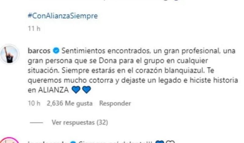 El ‘Pirata’ mandó un emotivo mensaje en Instagram, despidiendo de esta manera a su ex compañero. "Sentimientos encontrados, un gran profesional, una gran persona que se dona para el grupo en cualquier situación. Siempre estarás en el corazón blanquiazul. Te queremos mucho, 'Cotorra', y dejaste un legado e hiciste historia en Alianza", precisó el goleador de Alianza Lima la temporada pasada.