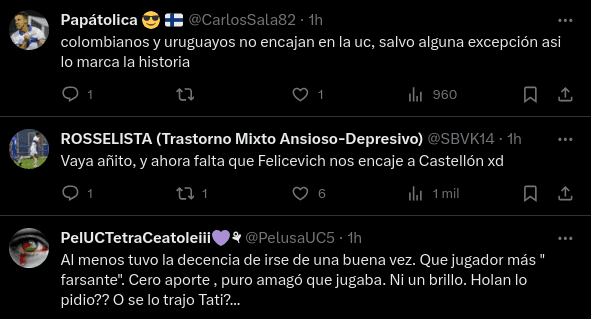 Es así, como en Chile al enterarse de esta noticia, los aficionados no dejaron la oportunidad de alegrarse por esa salida, pues consideran que no aportó nada al equipo a pesar de ser extranjero, es así como lo terminaron de insultar en varias oportunidades y casi todos están contentos que se fuera del club, dejando en claro que para Alianza Lima sería un gran error contratar a este futbolista para el próximo 2024, pues el periodista José Varela anunció que podría llegar junto a Aldair Quintana.