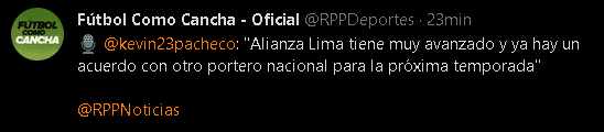Ahora, el periodista Kevin Pacheco en RPP, dio a conocer que ya prácticamente el conjunto ‘blanquiazul tiene un nuevo arquero para la siguiente temporada 2022. "Alianza Lima tiene muy avanzado y ya hay un acuerdo con otro portero nacional para la próxima temporada".