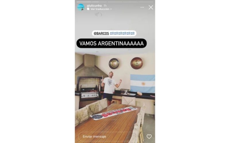 Desde muy temprano, el ‘Pirata’ compartió en sus stories de Instagram como vivía la final del Mundial Qatar 2022. Hizo una parrilla y colgó una bandera de Argentina. Además, en su mesa se pudo ver una banderola con su nombre de la hinchada ‘blanquiazul’. Minutos después, Guili Cunha, esposa de Barcos, posteó una foto del atacante, quien tenía una sonrisa de oreja a oreja y llevaba un polo con el escudo de Alianza Lima. “Vamos Argentinaaaa”, escribió la pareja del ex delantero de la Selección Argentina.
