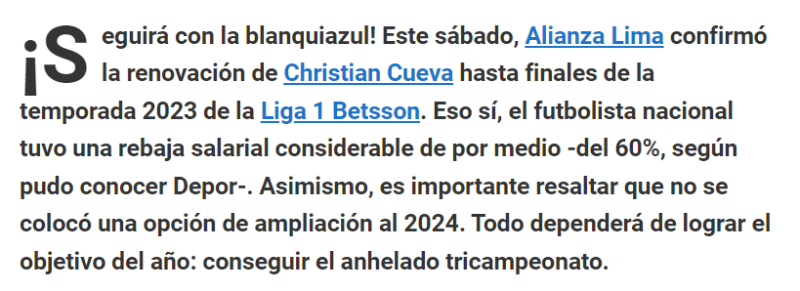 Ahora, debemos tener en cuenta que al ser un nuevo acuerdo hay distintos puntos que se debieron esclarecer. De acuerdo a una nota del diario ´Depor´ se ha sabido que ´Aladino´ se quedará hasta finales de este año 2023 y no hay una opción de ampliación para la siguiente temporada. Además tuvo una importante rebaja salarial del 60%, de lo contrario no se hubiese quedado en Matute.