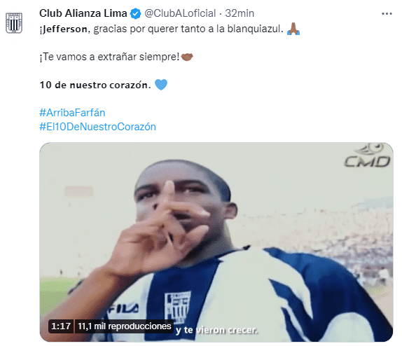 El club no dudó en darle un gran homenaje a uno de sus jugadores más importantes, dándole su merecido reconocimiento con un video que seguramente hará llorar a todo el Perú, pues se ven las imágenes del comienzo de la carrera de Jefferson Farfán y como fue creciendo, todo esto contado por su propia madre, quien le da un sentimiento bastante especial, con lo cual ahora se espera grandes cosas para la ‘Foquita’, quien posiblemente no deje Alianza Lima por completo.