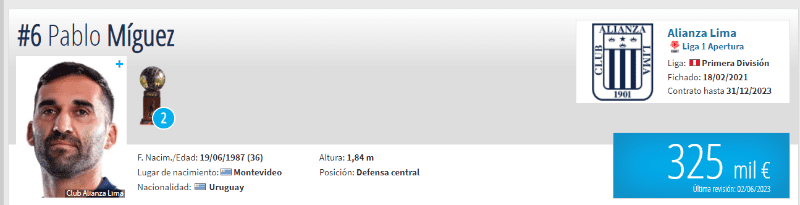 El defensor nacido en Montevideo, Uruguay tiene una cotización internacional de 325 mil euros, lo que en soles daría un promedio de 1 millón 200 mil, según el portal especializado ´Transfermarkt´. Su vínculo con Alianza Lima termina a fines de este año 2023, así que depende de cómo vaya su rendimiento en los siguientes partidos y de acuerdo a la evaluación que realice la directiva se conocerá de manera mucho más concreta si es que se quedará en Matute o deberá buscar otras opciones en el balompié.