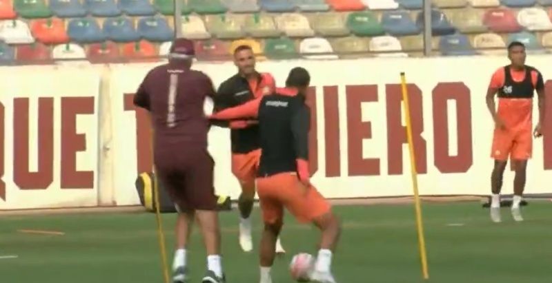 Durante las prácticas, según las imágenes de Willax Deportes, se lo ve al uruguayo dirigiendo las jugadas, es ahí cuando Succar no lo ve, Fossati quiere anticiparlo para recuperar el balón y el atacante le pone el cuerpo. Esta acción provocó que el DT se caiga de espaldas, una jugada de fútbol por la cual ambos personajes terminaron riéndose.