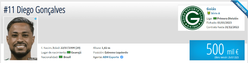 Diego Gonçalves tiene un precio monetario en el mercado internacional de 500 mil euros, lo que en soles daría un promedio de 1,9 millones, de acuerdo al portal ´Transfermarkt´. Veremos si es que finalmente dicho interés por parte de Sporting Cristal prospera y si es que en los próximos días se tiene mayor conocimiento al respecto, teniendo en cuenta que el aspecto económico siempre es uno de los factores más relevantes al momento de una negociación tan importante.