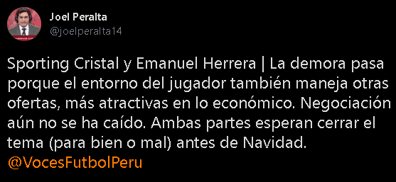 Según se pudo saber por el periodista Joel Peralta, el jugador Emanuel Herrera habría recibido alguna oferta de clubes extranjeros, es así como la llegada del argentino al Perú es bastante complicada, ya que estarían tanteando a donde le convendría ir a jugar en el 2022.