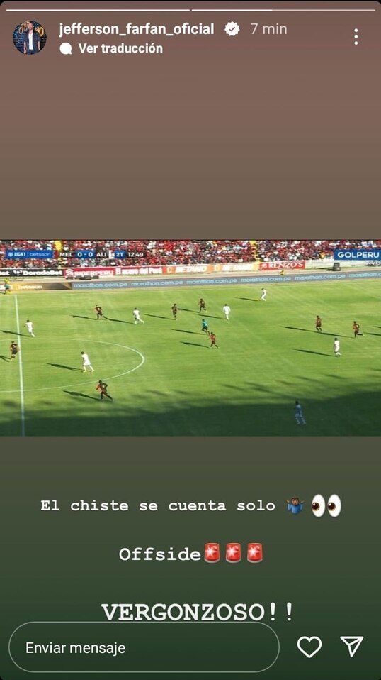 Por ese motivo, Jefferson Farfán apuntó al árbitro con una historia en donde llama ‘Vergonzoso’ el accionar del juez, ya que cobraron un offside que no era, mientras que también no amonestaron a Orzán por una jugada que era toda de amarilla, con eso ya se daba lo que es la expulsión por doble amarilla, estas acciones pese a que no fueron las únicas, terminaron perjudicando a Alianza Lima, por lo menos es lo que se interpreta de las expresiones de la ‘foquita’.