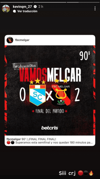 Aunque, de igual forma el extremo derecho dejó un curioso mensaje en sus redes sociales con el marcador del partido y un “Siii crj” con dos emojis con los colores de Melgar y una llamita de fuego, por lo que parece muy animado de volver a jugar contra su exequipo, Alianza Lima, con el cual tiene muchos recuerdos, sobre todo resaltan los malos de su renovación, pues quería cobrar una fortuna para quedarse, al no llegar a un acuerdo se marchó libre del club con destino a Brasil en donde no le fue para nada bien.