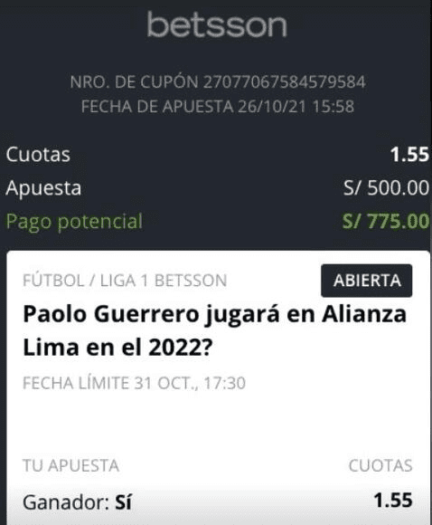 Las apuestas en el país se han convertido en el pan de cada día, los hinchas siempre aprovechan sus ratos libres para ver si pueden conseguir una ganancia apostándole a su equipo favorito, en esta oportunidad es algo diferente, pues le apostó a la llegada de Paolo Guerrero a Alianza Lima.