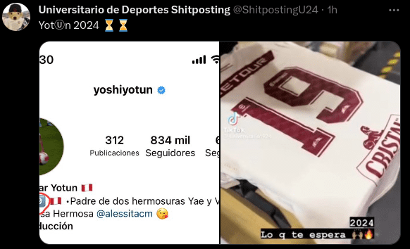 Todos saben del interés real que tiene la U con Yoshimar Yotún, por lo que ahora apareció una sorpresiva imagen que colocó Edison Flores en sus redes sociales en donde se ve la camiseta número 19 de la U con el mensaje “2024, lo que te espera”, esto ha hecho pensar a varios que se trata de un nuevo fichaje y de nada más y nada menos que el mediocampista de Sporting Cristal el cual también usa ese número, con lo cual ya en Ate se están haciendo ilusión con esta contratación. Apuesta en Betsson a los partidos de las mejores ligas del mundo y recibe un bono de bienvenida de 50 soles