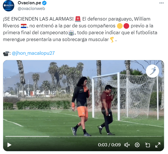 Este futbolista se trata de William Riveros, el paraguayo al parecer no llegaría para este encuentro del sábado, esto luego de que se conociera que tiene una sobrecarga muscular, lo cual deja dudas sobre su presencia el día sábado en el estadio Monumental, si bien todavía no hay una confirmación de nada, de ser esta la lesión, probablemente no llegue a este juego o lo arriesguen, esto ya tendrá que decidirlo tanto el cuerpo médico, jugador y entrenador.