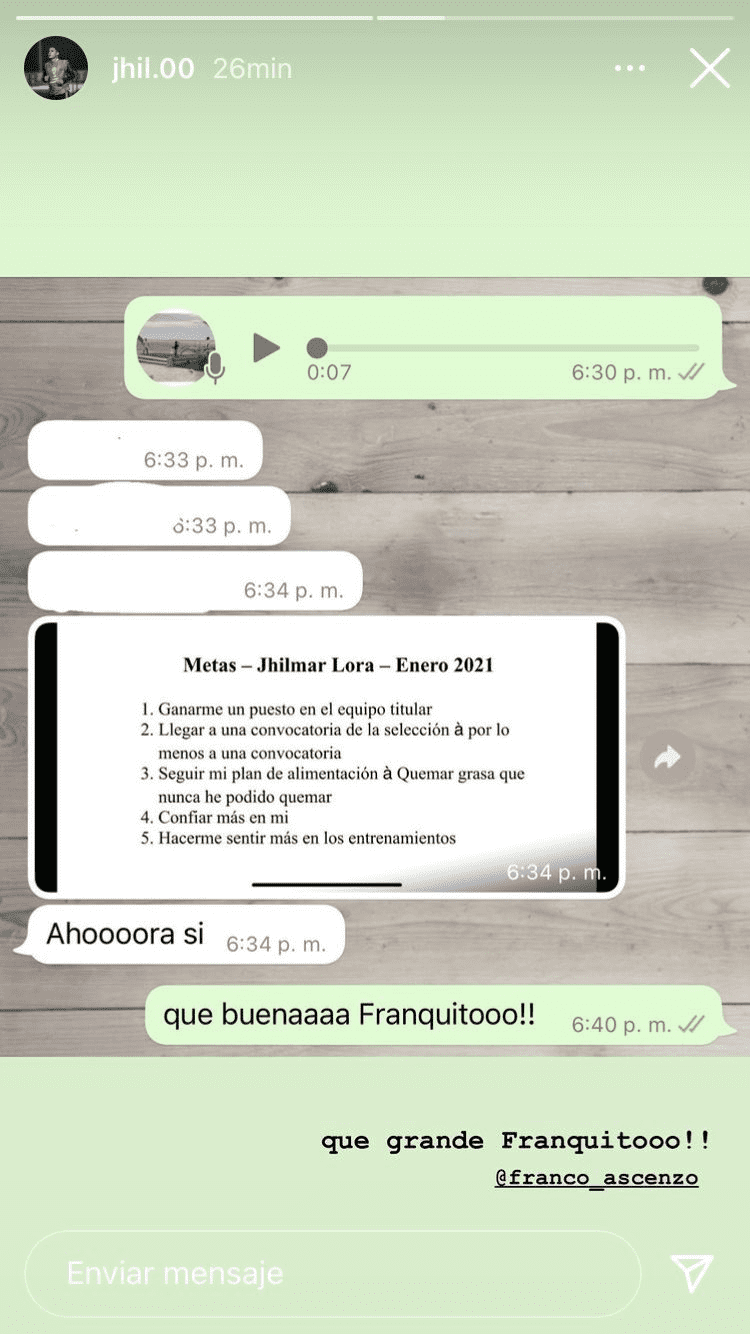 Además, en los últimas días se reveló algo muy personal de él que reafirma su gran momento. Resulta que Franco Ascenzo, el psicólogo de Sporting Cristal, le ordenó plantearse metas personales. Lora hizo una lista con 5 objetivos y el jugador celeste consiguió todas y cada una de ellas.