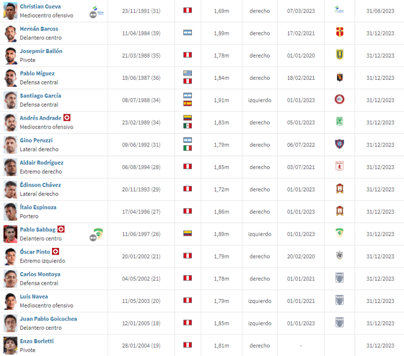 En esta lista de Transfermarkt, vemos como hay jugadores importantes como Christian Cueva, Hernán Barcos, Pablo Sabbag, Gino Peruzzi, entre otros que pueden irse a final de año, de igual forma, también hay grandes promesas que podrían llegar a otro club como es el caso de Luis Navea, Enzo Borletti y Juan Pablo Goicochea, por lo que ahí Alianza Lima tiene que ver de poder renovarle a los mejores o podría terminar con bajas de peso para el próximo año.