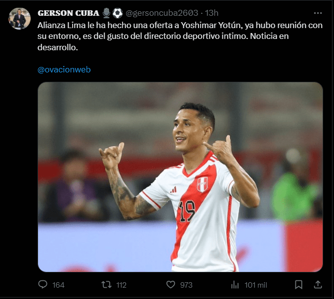 “Alianza Lima le ha hecho una oferta a Yoshimar Yotún, ya hubo reunión con su entorno, es del gusto del directorio deportivo íntimo. Noticia en desarrollo”; fue la información compartida por el periodista deportivo Gerson Cuba. Ahora, el cuadro merengue es quien más interés mostró en las últimas semanas y fue Jean Ferrari, administrador y principal vocero del club, quien así lo confirmó en diversas entrevistas. Mientras que el volante anda pedido por los ´compadres´ y no tendría muy claro su futuro, hay otro jugador del cuadro rimense que le demuestra su amor incondicional al equipo que lo vio nacer futbolísticamente, a pesar de también haber sido tentando en irse. Apuesta en Betsson a los partidos de las mejores ligas del mundo y recibe un bono de bienvenida de 50 soles