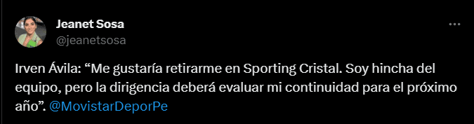 “Me gustaría retirarme en Sporting Cristal. Soy hincha del equipo, pero la dirigencia deberá evaluar mi continuidad para el próximo año”; fueron las declaraciones del ´Cholito´ tras el triunfo por 3-0 ante Alianza Atlético de Sullana en el Estadio Alberto Gallardo. Frente a esto es que los hinchas en redes sociales se han hecho presentes y, si bien es cierto que existe un respeto y una consideración de por medio, la gran mayoría lo quiere fuera del equipo para ver nuevos rostros y que el fracaso de este año 2023 no vuelva a repetirse más.