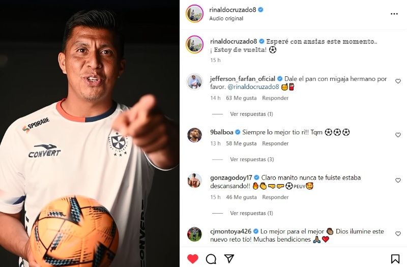 Futbolistas como Jefferson Farfán, Gonzalo Godoy, Diego Penny, entre otros, comentaron la vuelta de Rinaldo Cruzado en su post en Instagram. “Dale el pan con migaja hermano por favor”, fue lo que comentó Jefferson Farfán a su excompañero de la Selección Peruana y Alianza Lima. “Jefferson Farfán necesito solo un 1% tuyo de ese Pan con mermelada… YA VUELVE POR FAVOR!! GRACIAS HERMANO TQM”, fue la respuesta del talentoso mediocampista al ‘10 de la calle'.