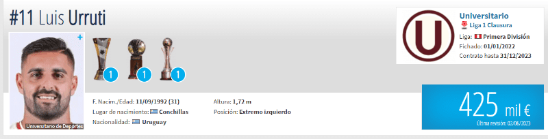 El delantero uruguayo naturalizado peruano tiene una cotización internacional de 425 mil euros, lo que en soles daría un aproximado arriba de 1,6 millones, de acuerdo al portal internacional ´Transfermarkt´. Su contrato en Universitario de Deportes está por vencer, así que de todas maneras se darán novedades en los próximos días y los hinchas estarán atentos, sobre todo los de Sporting Cristal que podrían tener a su primer refuerzo de cara al 2024.