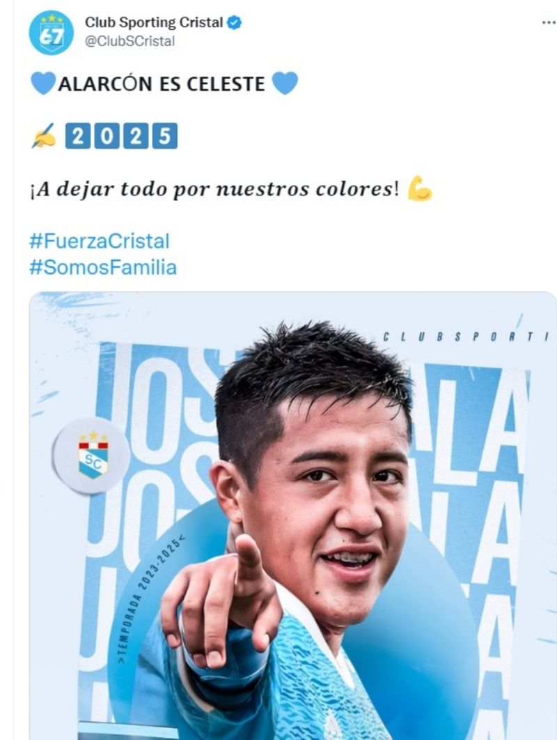 Se trata de Jostin Alarcón, proveniente de Sport Boys del Callao. El delantero extremo de 20 años fue anunciado por las redes sociales del equipo, precisando los siguiente: “Alarcón es celeste. ¡A dejar todo por nuestros colores”. Es así como, el jugador deja el primer puerto del país para ir al Rímac, esto se debe en parte gracias a sus 5 goles y 5 asistencias que hizo la temporada anterior en 33 partidos disputados. De esta manera, el futbolista firmó contrato con el club celeste hasta la temporada 2025.