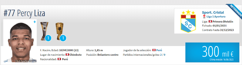 El presente de Sporting Cristal es uno de los más expectantes con miras a la obtención del título nacional a fin de año, teniendo en cuenta que para ello primero deberán quedarse con el Torneo Clausura. Si bien es cierto que se tiene en cuenta a varios jugadores que están demostrando un nivel muy bueno que ha permitido un crecimiento mucho más importante en el colectivo, hay algunos que también vienen pasando desapercibidos y casi que no tenido minutos como es el caso de Percy Liza, quien volvió para esta segunda parte de la temporada desde Portugal.