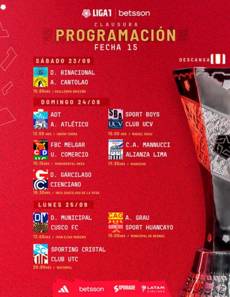 La Liga 1 informó a todos los aficionados la nueva programación de la fecha 15 del Torneo Clausura. En dicha jornada, descansa Universitario de Deportes y uno de los planteles que será local en Lima es Sporting Cristal. El equipo de Tiago Nunes será local ante UTC de Cajamarca, pero la fecha programada fuerza a que los celestes no jueguen en el Estadio Alberto Gallardo, como tradicionalmente lo han hecho a lo largo de la temporada.
