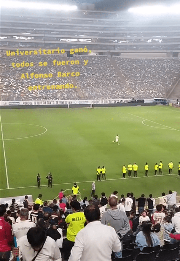 Alfonso Barco al no tener oportunidad de jugar y al haber estado en el banco de suplentes, decidió que lo mejor para él era poder entrenar, así que ante los ojos de algunos hinchas que todavía quedaban en el coloso de Ate, se puso a entrenar, es así como un video lo puede seguir al jugador haciendo carrera desde el centro del arco hacia la línea de fondo del arco sur, lo cual hizo que varios hinchas de Universitario de Deportes reconocieran su esfuerzo por mejorar.