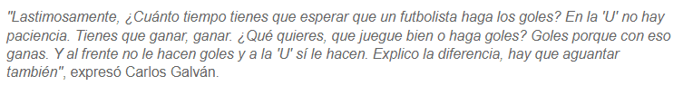 Ante esta premisa es que varios ex jugadores con identificación merengue están saliendo al frente para dar su posición al respecto, a pesar de que no guste mucho. Este es el caso de Carlos Galván, quien no tuvo pelos en la lengua y detalló cuál es el verdadero problema de la ´U´ que no le permite conseguir victorias para estar en el más alto de la tabla de posiciones.