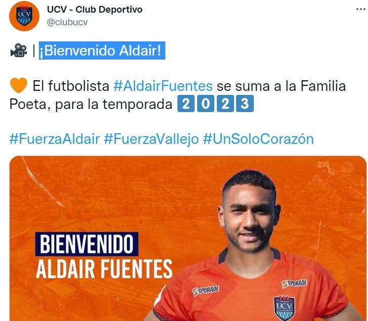 Es así como, Fuentes encontró un nuevo club por el cual ya fue presentado hace unos instantes. Nos referimos a la Universidad César Vallejo. Así es, el elenco ‘poeta’ confirmó la llegada del ex defensor de Fuenlabrada de España en sus redes sociales. “¡Bienvenido Aldair! El futbolista Aldair Fuentes se suma a la Familia Poeta, para la temporada 2023”, reveló el elenco trujillano vía Twitter.