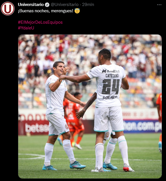 El elenco ‘crema’ tras acabado el partido de los blanquiazules decidió poner un tweet en sus redes sociales, con el mensaje “¡Buenas noches, merengues!”, lo cual sin duda alguna se entiende que es debido a la derrota de los aliancistas, por lo que no podían celebrar de otra forma que su gran rival volvió a caer en un torneo internacional.