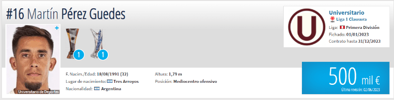 Estamos hablando de Martín Perez Guedes. El volante argentino de 32 años llegó como un gran fichaje a inicios del año 2023 y empezó mejor de lo que terminó el campeonato. A pesar de ello y de que quizá no fue quien más brilló en las definiciones, hoy se ha conocido que no solo estaría a nada de recibir su nacionalización para no ocupar plaza de extranjero, sino que también es un jugador recontra querido por Jorge Fossati y que le ha pedido a la directiva que le renueven el vínculo contractual a como de lugar en los próximos días. Apuesta en Betsson a los mejores partidos del mundo y recibe un bono de bienvenida de 50 soles