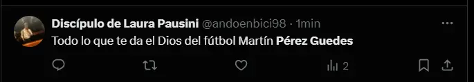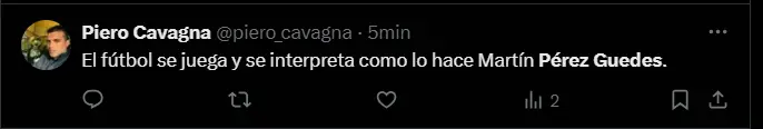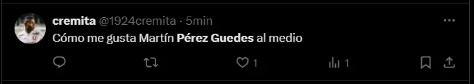 “Cómo me gusta Martín Pérez Guedes al medio”, “El fútbol se juega y se interpreta como lo hace Martín Pérez Guedes” y “Todo lo que te da el Dios del fútbol Martín Pérez Guedes”; son algunos de los comentarios más resonantes que se pueden apreciar en las redes sociales en señal del buen rendimiento que el volante argentino viene cumpliendo con la camiseta de Universitario de Deportes frente a un Sport Huancayo que claramente llegó al recinto merengue para hacer su trabajo.