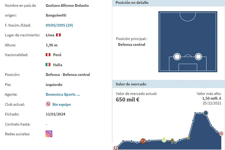 Dicha información podemos apreciarla a través del reconocido portal especializado ´Transfermarkt´ y claramente nos damos cuenta que el aspecto de las lesiones y de la falta de continuidad durante los últimos meses ha podido perjudicar en demasía los intereses en todo aspecto del zaguero central, quien ahora tras volver al club de sus amores seguramente querrá volver a sus mejores versiones, dar qué hablar en el torneo local y por qué no volver a salir al extranjero en un futuro cercano.