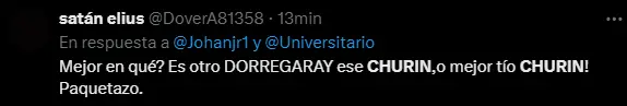 Una de las principales razones por las que Churín es objeto de críticas es la comparación con Diego Dorregaray, el delantero que lo precedió en Universitario. Dorregaray, a pesar de no ser un goleador prolífico, se ganó el cariño de la hinchada por su entrega y sacrificio en el campo de juego.