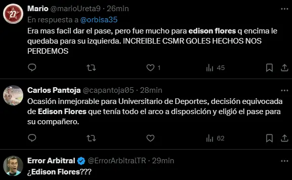 Pero no es el primer partido que pasa esto, Edison Flores mencionó que ante Alianza Lima también se sintió así, ya que no le dejaban hacer su fútbol, por lo que terminó tan frustrado que en una jugada Erick Noriega terminó celebrando un saque de arco, lo cual hizo que 'Orejas' se moleste tanto que le grite el gol en la cara más adelante, un error que admitió haber cometido.