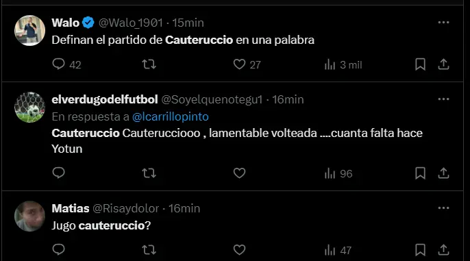 Claramente esta situación viene perjudicando duramente a un Sporting Cristal que ahora deberá remar desde atrás en el objetivo principal que tienen de lograr el título nacional. Parece increíble ya que mientras algunos jugadores sí vienen dando la talla y tratando de alcanzar sus mejores versiones, la presencia de Martín Cauteruccio en el 11 titular no está siendo muy bien justificada que digamos desde que regresó a los campos de juego.