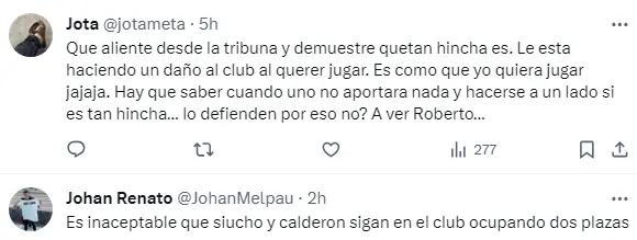 Pero hay un jugador sobre todo que se llevó la mayor cantidad de críticas, este es Roberto Siucho, el cual no estuvo a la altura del encuentro, se le notó bastante falto de fútbol, errático a la hora de poder tomar decisiones, lo cual no pasó desapercibido por parte de los hinchas, los cuales ya no lo quieren más en el club y buscan su salida. Apuesta en Betsson a los partidos de las mejores ligas del mundo y recibe un bono de bienvenida de 50 soles