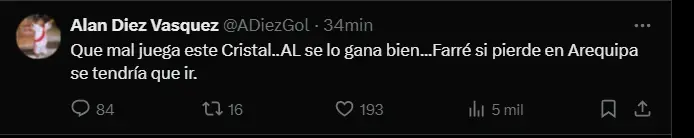 Las redes sociales se han convertido en un hervidero de críticas hacia Guillermo Farré. Los hashtags #FueraFarré y #CristalNoJuegaANada se han viralizado, reflejando el sentir de los hinchas. La afición exige un cambio en la dirección técnica, argumentando que el equipo necesita un entrenador con mayor experiencia y capacidad para revertir la situación.