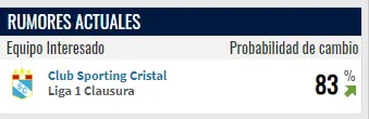 Sporting Cristal por el momento no ha hecho ningún fichaje, todo parece que se está cayendo en Tienda Celeste, pero se ha dado a conocer la posibilidad de un nuevo jugador que llegue a La Florida, sobre todo que podría llegar ser importante, se trata de Franco Zapiola, quien se ha dado a conocer que podría llegar a ser una opción real y no solo un gusto del hincha, así que habrá que esperar a que se pueda llegar a completar.