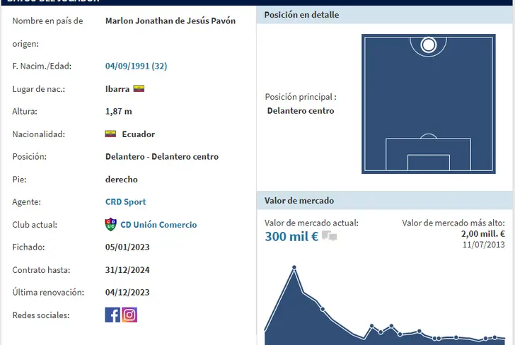 Según el portal especializado 'Transfermarkt', podemos apreciar que Marlon de Jesús tiene una cotización internacional de 300 mil euros, lo que en soles daría un promedio cercano a los 1,2 millones. En la actualidad viene peleando por no descender en esta temporada 2024 con la camiseta de Unión Comercio, así que nadie sabe si es que quizá desde la directiva de Alianza Lima puedan tomar en cuenta las sensaciones que manifestó Peter Arévalo respecto al delantero y posiblemente en un futuro lo puedan tener como una posibilidad de fichaje.