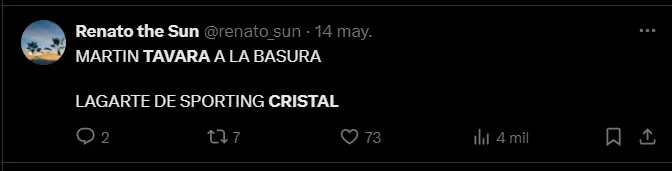 Si Sporting Cristal realmente quiere estar mucho más tranquilo con sus hinchas y ver cómo no se les escapa la posibilidad de seguir peleando por el título, el profesor Enderson Moreira debería darse cuenta que un jugador que viene siendo recontra titular ya no merece seguir siendo parte del 11 por nada del mundo al ver la competitividad extrema le viene quedando muy grande. Estamos hablando específicamente de Martín Távara.