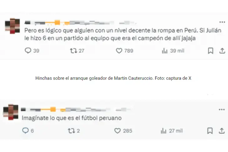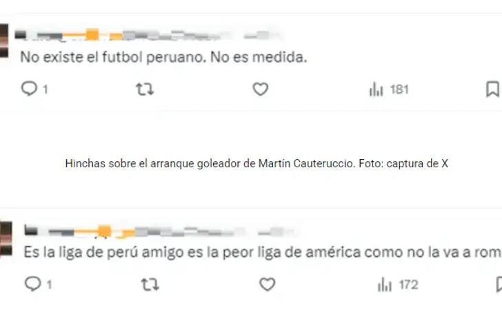 “Un disparate total son las defensas de los equipos de la Liga 1. En Perú, el nivel es bajísimo", "Es lógico que alguien con un nivel decente compita en Perú", "Imagínate lo que es el fútbol peruano", "En Perú, el 90% de los defensas no marcan", "Es Perú, allá va cualquiera y es figura", "No existe el fútbol peruano, no es medida”; son algunos de los comentarios más resonantes que se pueden apreciar vía twitter en señal de menospreciar las actuaciones del popular ´Cautegol´.
