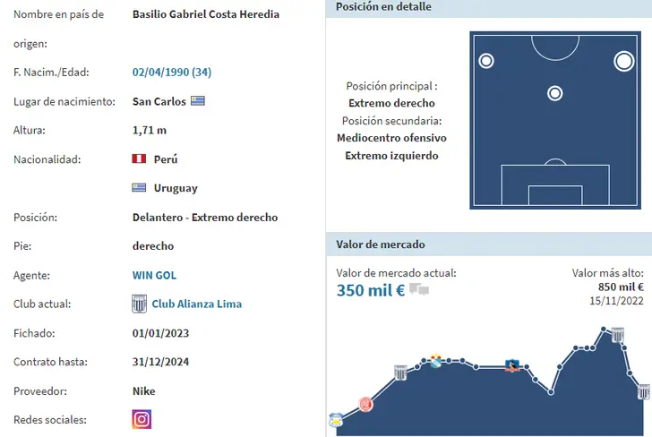El delantero uruguayo nacionalizado peruano de 34 años tiene una cotización internacional de 350 mil euros, lo que en soles daría un promedio cercano a los 1,4 millones, de acuerdo al portal especializado ´Transfermarkt´. Veremos si es que desde la directiva también podrían tener en cuenta todas estas premisas y antecedentes para determinar una decisión que deberá ser tomada muy pronto ya que el tiempo apremia y los resultados positivos son los que más esperan los aficionados rimenses.
