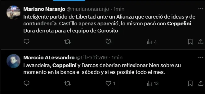 La actuación de Alan Cantero en el segundo tiempo deja en evidencia que Alianza Lima debería replantearse su alineación titular, al menos en lo que respecta a la posición de Pablo Ceppelini. Si bien Ceppelini tiene las cualidades para ser un referente en el equipo, hoy su falta de ritmo y su incapacidad para influir en el juego lo pusieron en una posición vulnerable. En cambio, Cantero no solo mostró más actitud y determinación, sino que también dio indicios de ser un jugador con el que Alianza Lima puede contar para los duros desafíos de la Copa Libertadores.