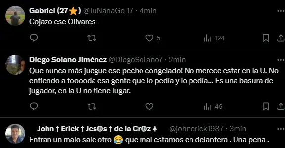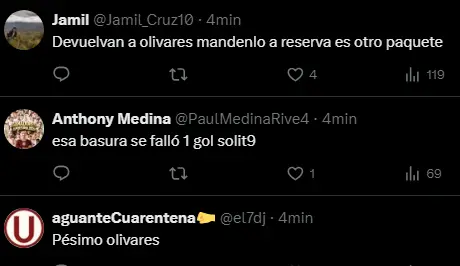 Y es que el delantero de Universitario de Deportes no se le vio nada bien dentro del terreno de juego, no se le vio como una solución para llegar al gol, algo que claro que se le pide al ser delantero, pero que en este caso no logró hacer las cosas bien, siendo de los peores del partido, tanto así que los mismos hinchas le reclamaron en las redes, viendo como un 'paquete' en algunos de los casos.