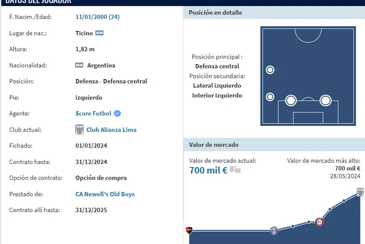 Juan Pablo Freytes, defensor argentino de 24 años, tiene un precio internacional de 700 mil euros, lo que en soles daría un promedio cercano a los 2,1 millones, de acuerdo al portal especializado 'Transfermarkt'. Es importante mencionar y destacar que la directiva de Alianza Lima tendría que desembolsar dicha cantidad de dinero para quedarse con los servicios del zurdo, así que depende de cómo vayan a darse las negociaciones con las altas instancias de Newell's Old Boys de Argentina para concretar el acuerdo.