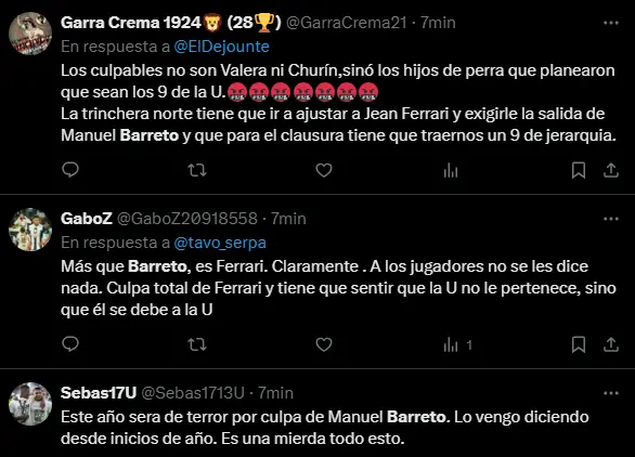 La crítica no es nueva, pero la caída en Ecuador la hizo explotar por completo. En redes, los hinchas crema responsabilizan a Barreto de haber formado un plantel corto, desbalanceado y sin recambios de jerarquía, sobre todo en ataque.