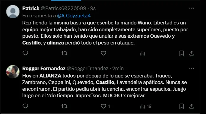A pesar de que Libertad dejó algunos espacios en la defensa, Castillo no supo aprovecharlos. Sus arranques fueron previsibles y, en muchas ocasiones, la defensa de Libertad lo neutralizó sin mayores problemas. Además, sus centros al área y sus intentos de conexión con sus compañeros fueron descoordinados, lo que hizo que Alianza Lima no lograra crear ocasiones claras de gol en el primer tiempo. La falta de profundidad en su juego fue uno de los factores clave que contribuyó a la derrota de su equipo por 0-1.